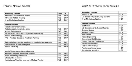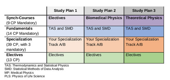 Your focus or specialization (Track A: Medical Physics or Track B: Physics of Living Systems) does NOT depend on the SP you are in and is your personal choice entirely. The assignment to one of the three SPs, however, is made by the admissions committee following the regulations of admission to best fit you to the goals of the program.